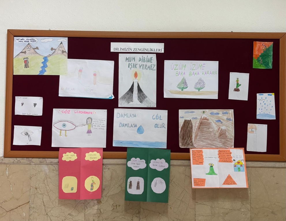 Atasözleri ve deyimler, dilimizin zenginliğini ve derinliğini yansıtan önemli unsurlardır. Bu bağlamda, okulumuzda şubat ayı boyunca deyim ve atasözleri ile ilgili "Anlat Bakalım", "Drama ile Atasözü/Deyim Anlatma", "Atasözü/Deyim Resimleme" etkinlikleri yapılmıştır. Şubat ayı boyunca gerçekleştirilen atasözü/deyim okumaları etkinlikleri, öğrencilerin kültürel mirasa yönelik farkındalıklarını artırmada etkili olmuştur. Özellikle öğrencilerin etkinliklere aktif katılımı ve ortaya çıkardıkları ürünler kalıcı öğrenmeye destek olmaktadır.